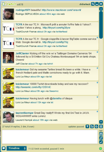 And, just after some successful days of usage, I have read that Seesmic is acquiring twhirl! Cool. More information about the acquisition by Loic.